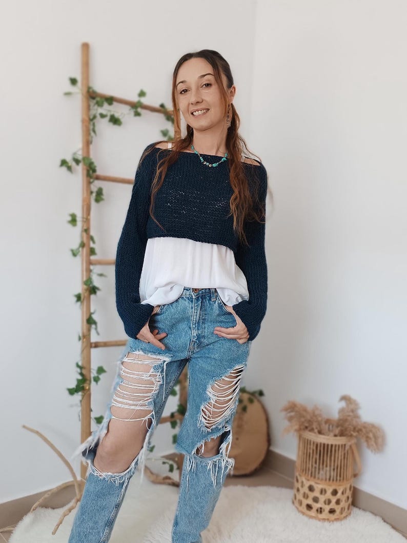 It is a cropped sweater for women with long sleeves, made of camel wool, extremely soft touch.