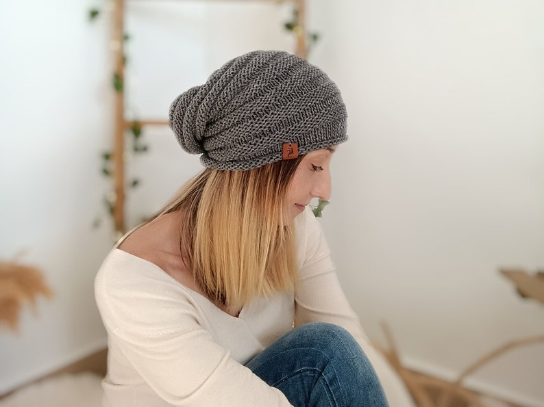 This loose-fitting hat with two needles using a vegan wool composed of 100% dralon acrylic, a hypoallergenic and extremely soft fiber that allows you to wear this garment in any season of the year.