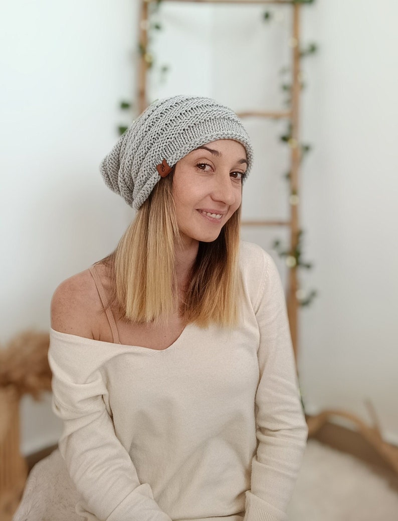 This loose-fitting hat with two needles using a vegan wool composed of 100% dralon acrylic, a hypoallergenic and extremely soft fiber that allows you to wear this garment in any season of the year.