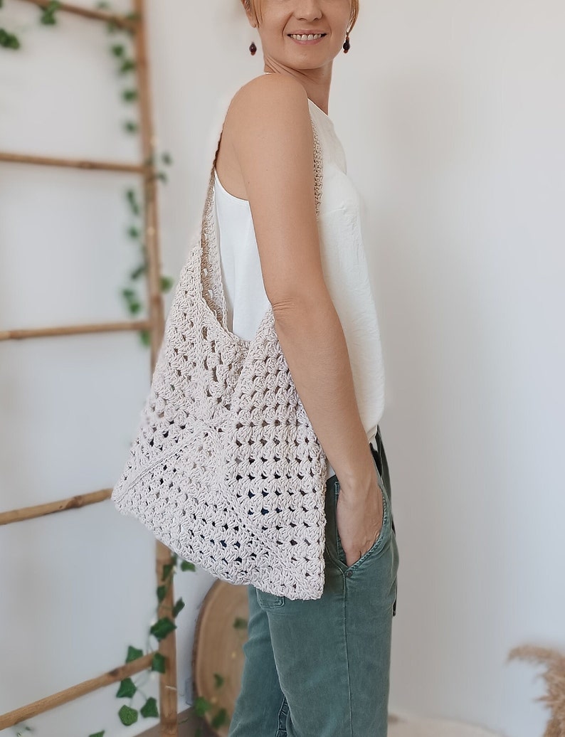 This hobo-style bag with granny squares in beige, perfect color for this summer season.