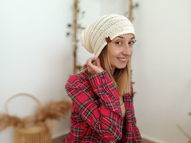 This loose-fitting hat with two needles using a vegan wool composed of 100% dralon acrylic, a hypoallergenic and extremely soft fiber that allows you to wear this garment in any season of the year.
