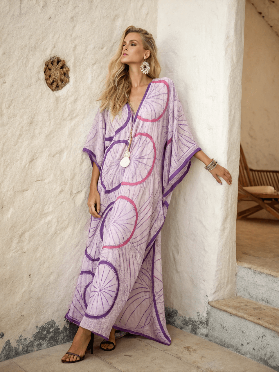 Linen Printed Kaftan Maxi Dress