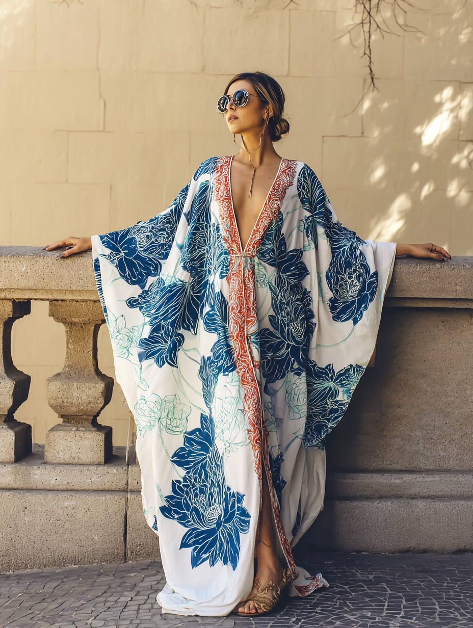 Lively Flowers Linen Cardigan Kaftan