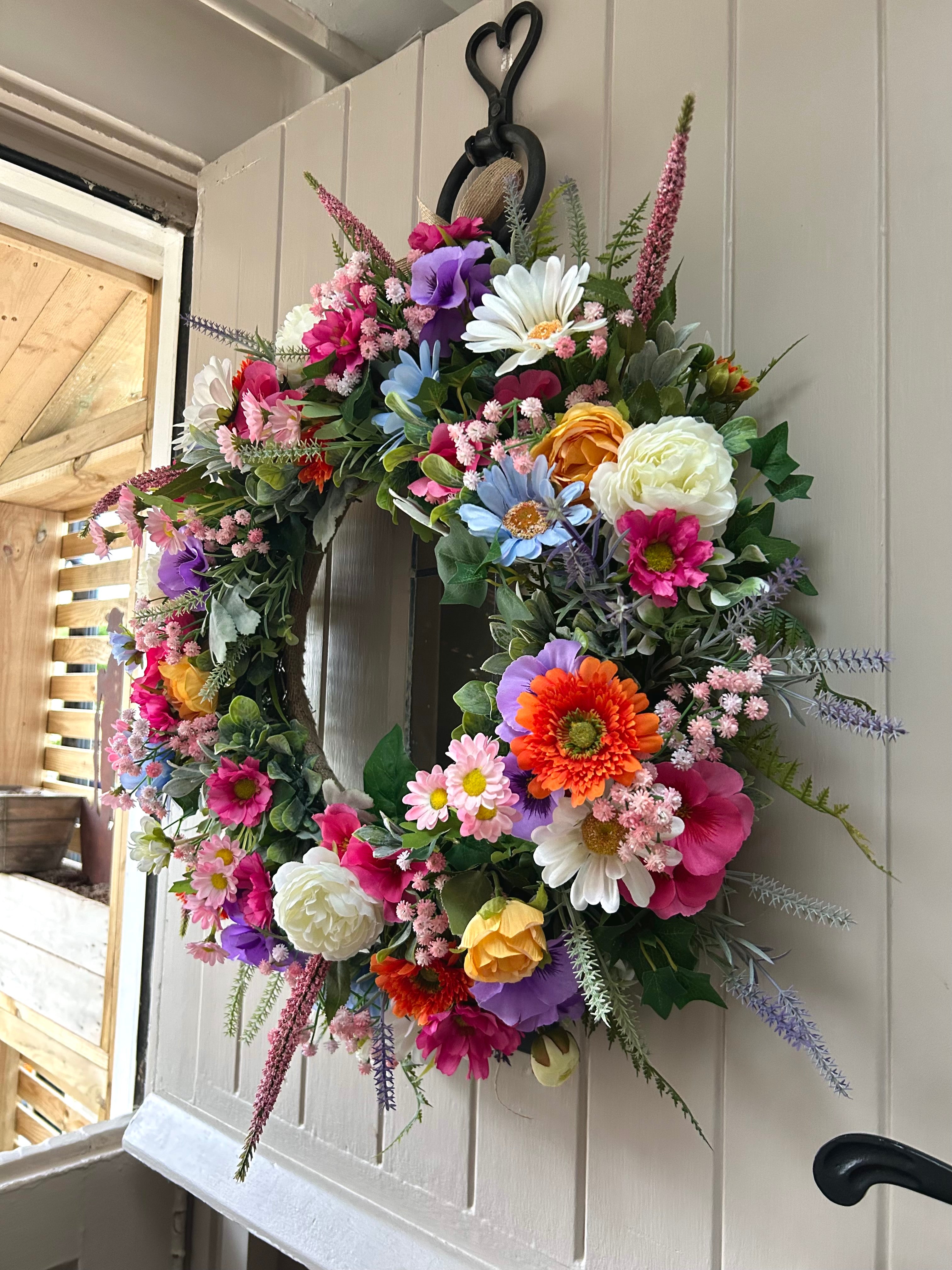 This Natural Faux Wreath is designed with beautiful and realistic artificial flowers. The natural, full-look of this wreath makes it a great addition to your home throughout any season. With a sturdy design and lifelike beauty, this wreath optimizes the aesthetic of any space.