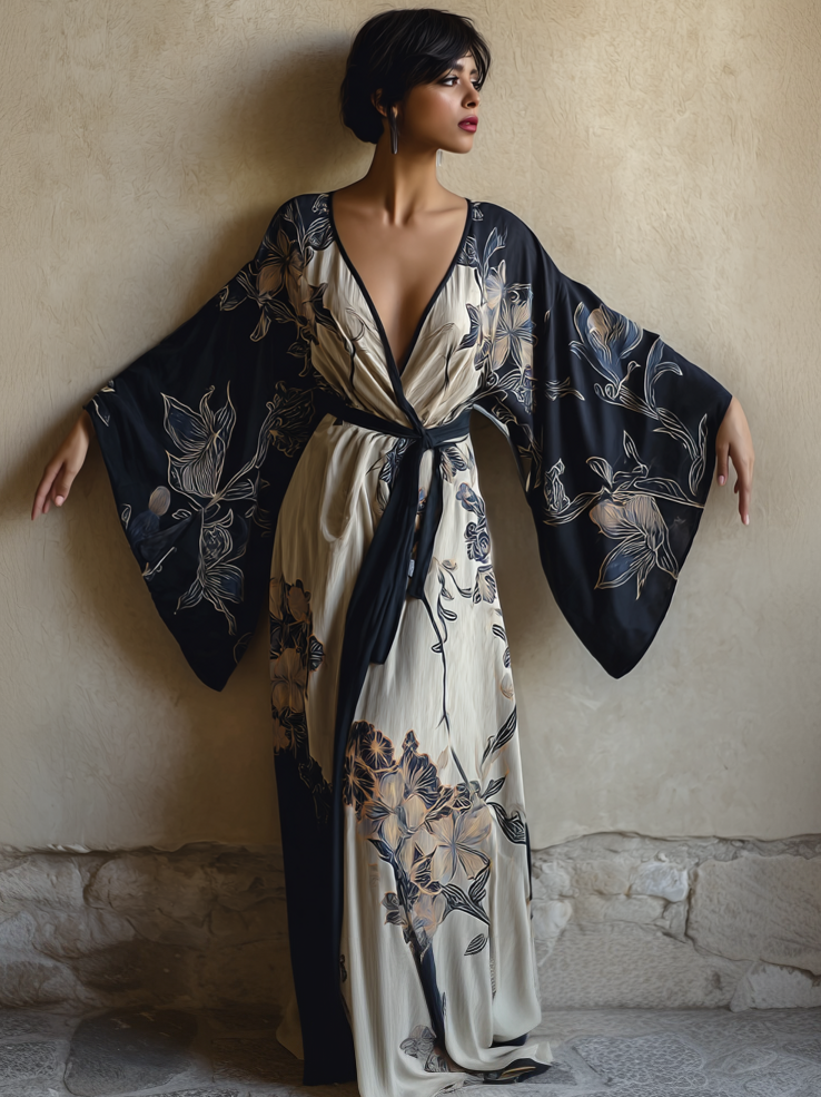 Women's Hibiscus Kimono Linen Robe (Including Belt)