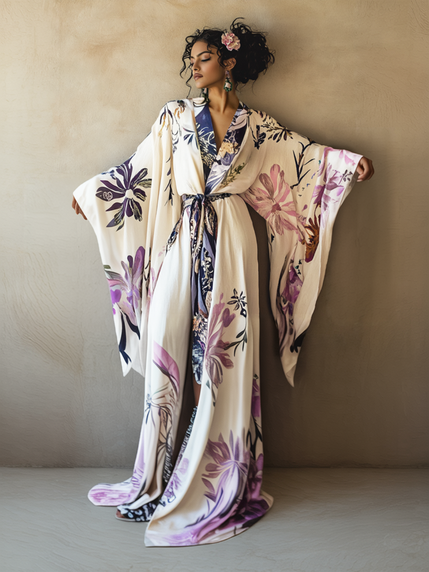 Women's Purple Iris Kimono Linen Robe (Including Belt)
